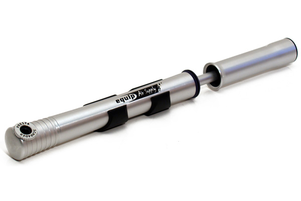 Equip. Smidig minipump i aluminium med vändbart munstycke som passar samtliga ventiler. Inkl fäste samt skruvar för ram montage.