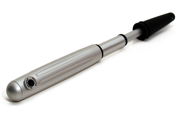 Equip. Teleskåppump i aluminium med manometer. Vändbart munstycke som passar samtliga ventiler. Inkl fäste för ram montage.